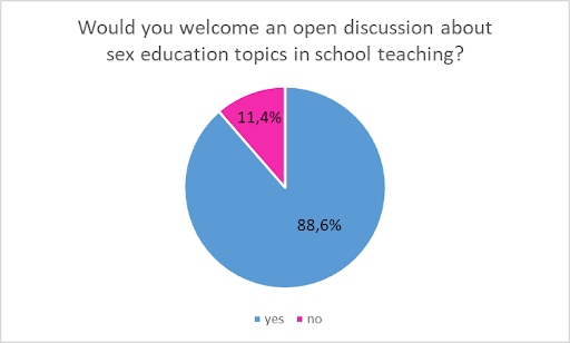 Only 11% of students answered “no” when we asked if they would welcome an open discussion about this topic during classes. A high percentage of yes responses confirmed to us that sex education is important to students and they see the importance in it themselves.
