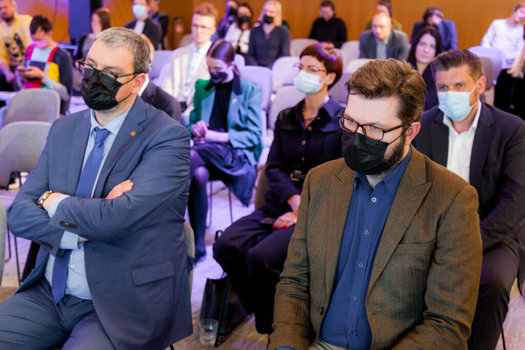 Apdovanojimus atidarė diskusija apie žiniasklaidos etiką ir laisvę gilėjančių skirčių laikais. Pastebėjimais apie tai, koks žiniasklaidos vaidmuo visuomenėje, kurią skaldo požiūris į pandemiją, migrantus, karą dalijosi LRT tyrimų skyriaus vadovė Indrė Makaraitytė, 15min.lt tyrimų skyriaus vadovė Jūratė Damulytė ir DELFI.LT žurnalistas Edgaras Savickas.