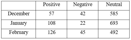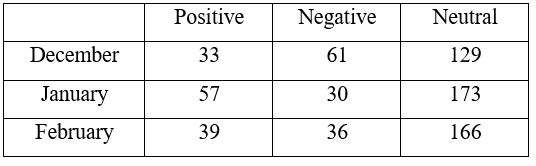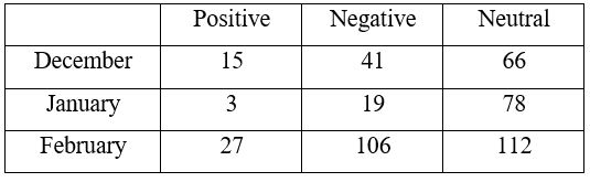 The increase of positive publications in January was mostly caused by the ECHR case. It has dropped once again this month, but the number is still better compared to the month of December. The majority of positive articles were interviews with various personalities who advocated for the LGBT community (for example, „81-erių DJ Wika: „Senatvė gali būti milžiniška motyvacija gyvenimui“, 15min.lt). Negative publications were mostly about the Istanbul Convention and the possible validation of gender as a social construct, as well as other issues pertaining to Lithuanian politics, namely characterizing the LGBT community as an entity that is destroying the country and its values (for example, „Paskutinis politinio lavono pirstelėjimas?“, Laisvas laikraštis, „Simonas Kroydonas nuo mafijinės teisėsaugos pabėgo į Londoną“, Laisvas laikraštis, „Tėvynė“ [4], Radviliškio kraštas).