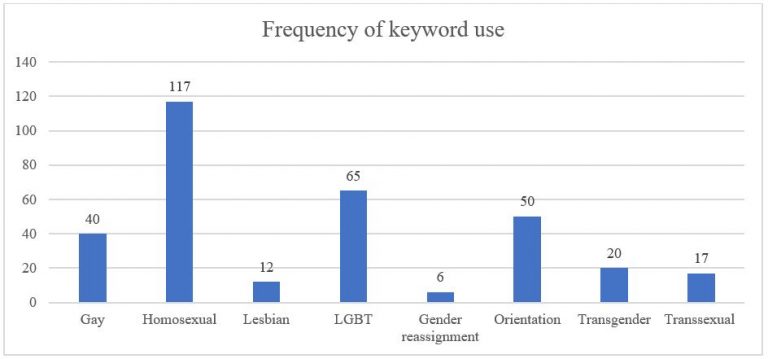 “Homosexual” was the most used keyword this month as well – it was used in 117 publications. The least discussed group is lesbians: they have only been mentioned 12 times this month, mostly when discussing the LGBT community in general.