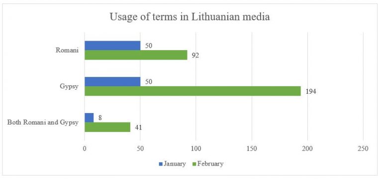 It is also worth mentioning that the number of publications that are exclusively about the Romani community is growing. The representatives of the community have a chance to speak out and change society‘s views on them („Nesame iš kitos planetos“, Šiaulių kraštas; „Dėl patyčių brolį praradusi romė Rasma: „O tėvai dar iki šiol vaikus gąsdina čigonais“, 15min.lt) and dispel the myth that Romanis do not care about the hurtful traditions of Užgavėnės („Šventinė tradicija ar patyčios? Piktinasi „žydukų“ ir „čigonų“ personažais“, tv3.lt).